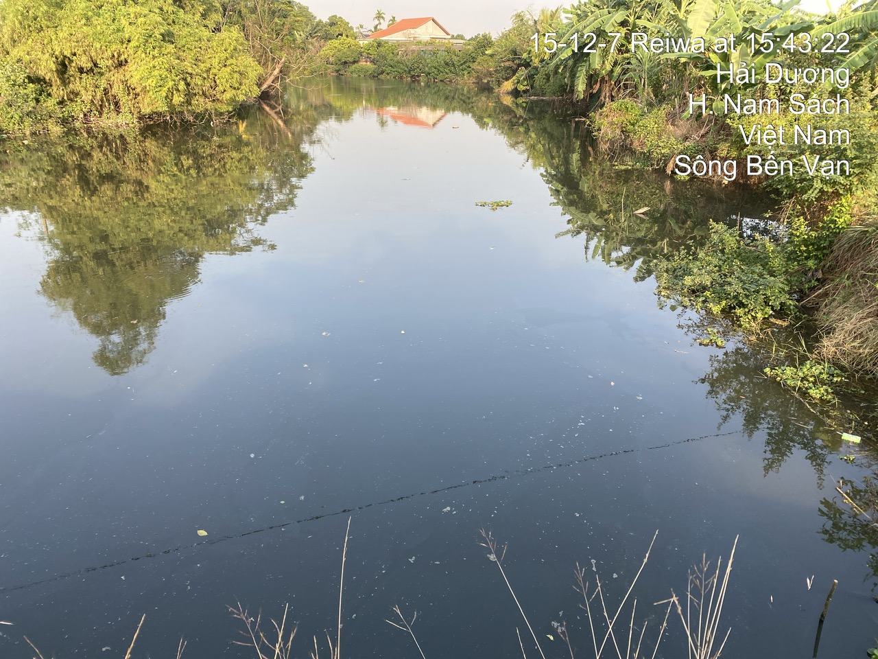Hình ảnh nước sông đen bốc mùi, cá chết khu vực Cầu xi phông( Ảnh chụp lúc 16h 15/12/2025)